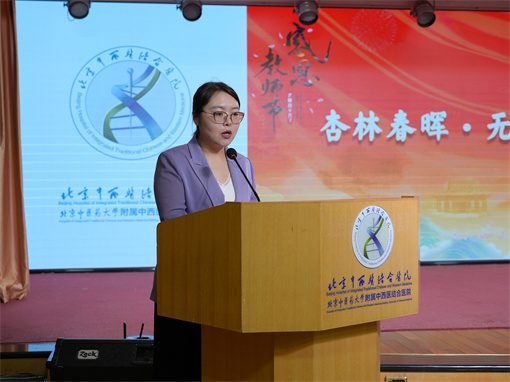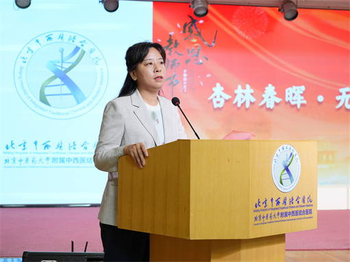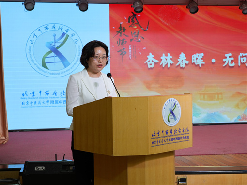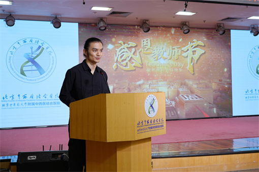韩永鹏代表医院领导班子,向辛勤耕耘在教学一线的全体教师及医护工作者致以最诚挚的节日祝福,并感谢北京中医药大学及海淀区卫生健康委对医院发展的支持。他强调,自成为北京中医药大学附属医院以来,医院始终将教学工作放在医院发展的重要位置,通过师资培训、进修学习、绩效政策倾斜等系列举措,不断夯实教学 “硬基础”、打造优质师资队伍,推动中医、中西医结合事业在传承中创新,为行业培养更多高素质人才。