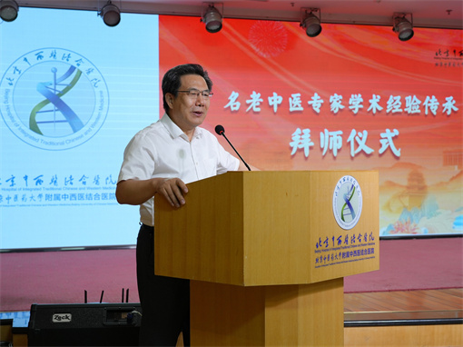 指导老师代表冯学功发表感言,感谢医院为中医药传承搭建优质平台,鼓励年轻一代继承和发扬中医特色,在传承中勇于创新。