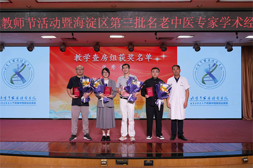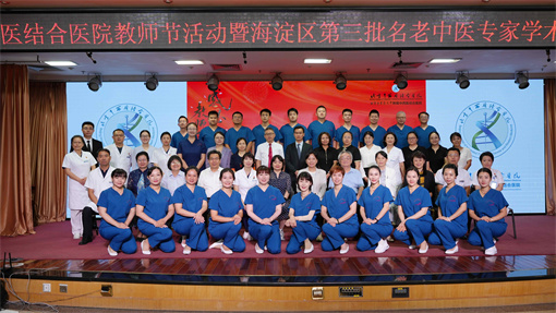 当日下午,以"杏林春晖·无问中西"为主题的教师节活动暨海淀区第三批名老中医专家学术经验传承拜师仪式在第一会议室举行。北京中医药大学教务处副处长姜姗、海淀区卫生健康委中医药管理办公室副科长骆叶、我院领导班子成员出席仪式,参加人员还有教师代表、医护人员代表,以及师承指导老师、学员和实习学生。
